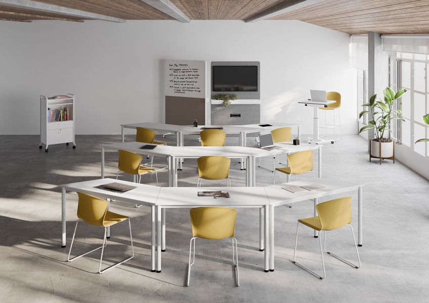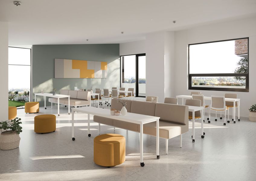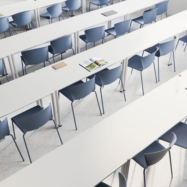 La estructura, fabricada íntegramente en aluminio, es el resultado de un amplio desarrollo de ingeniería que dota al programa de una gran flexibilidad para configurar mesas individuales, dobles o de progresión.